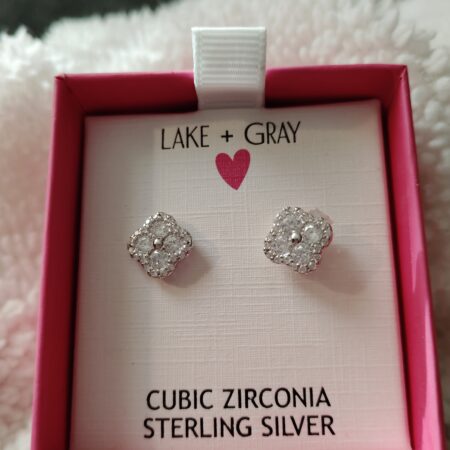 NEW Lake + Gray Cubic Zirconia 925 Sterling Silver Huggie Earrings