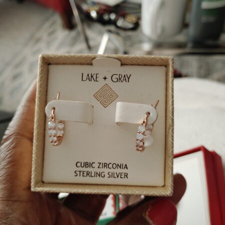 NEW Lake + Gray Cubic Zirconia 925 Sterling Silver Huggie Earrings